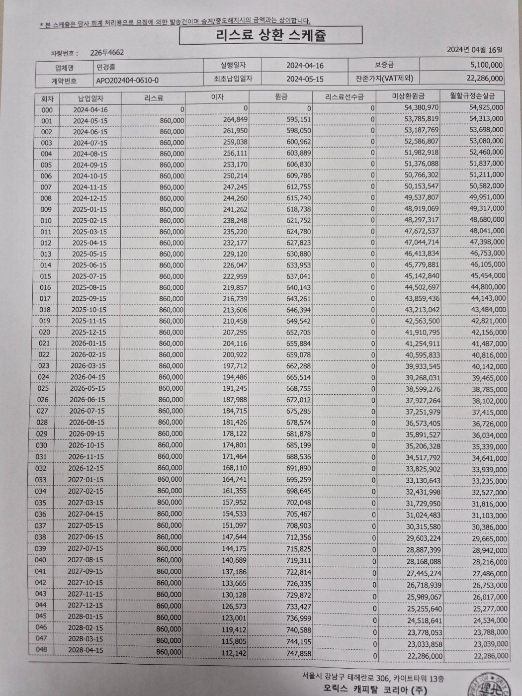 ▶리스 스케줄표